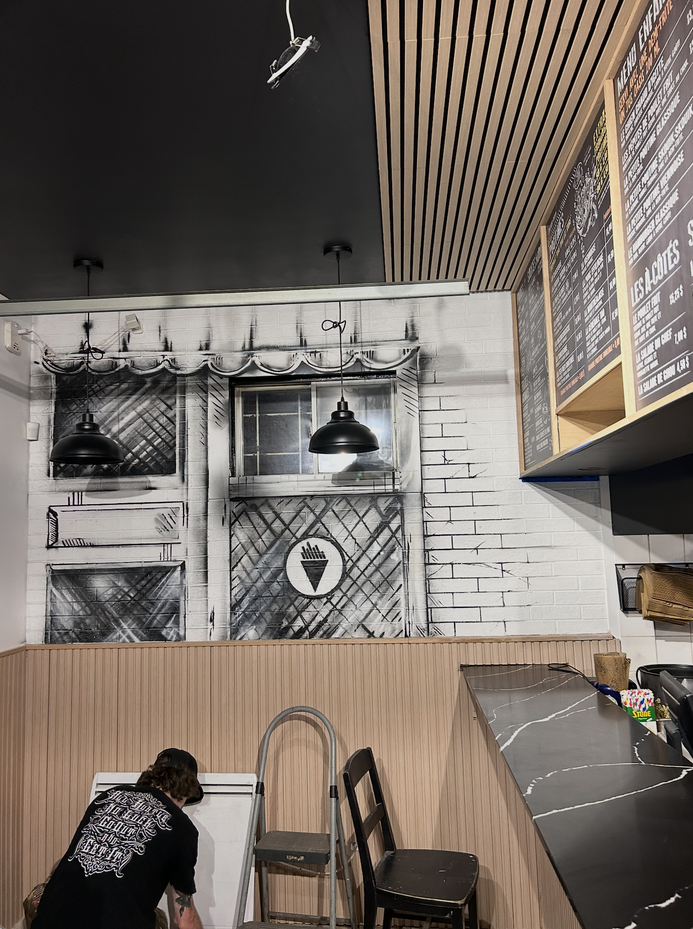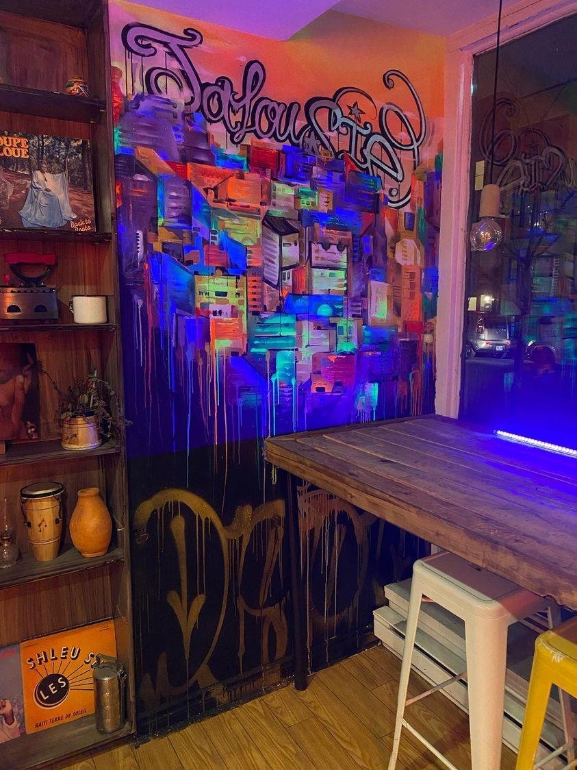 Restaurant Shandmas, Montreal_ Reproduction of the town of Jalousie in Haiti, also known as “The Bidonville” with the Deep abstract touch and an immersive twist which will bring the soul out of the city. Made in 2023.